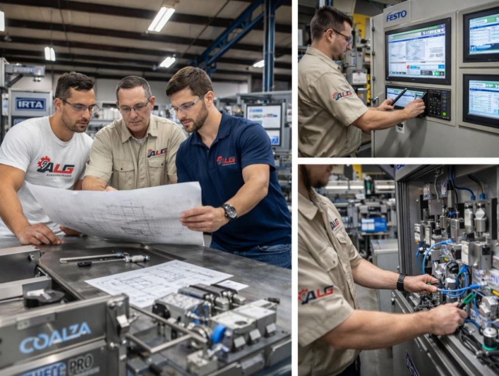 Acompañamos a nuestros clientes desde la etapa de análisis y diseño del proceso hasta la implementación y puesta en marcha de soluciones completas. Nuestro enfoque integra ingeniería de procesos, automatización industrial, maquinaria especializada y robótica, asegurando que cada proyecto esté alineado con los objetivos productivos, operativos y de crecimiento del cliente.
